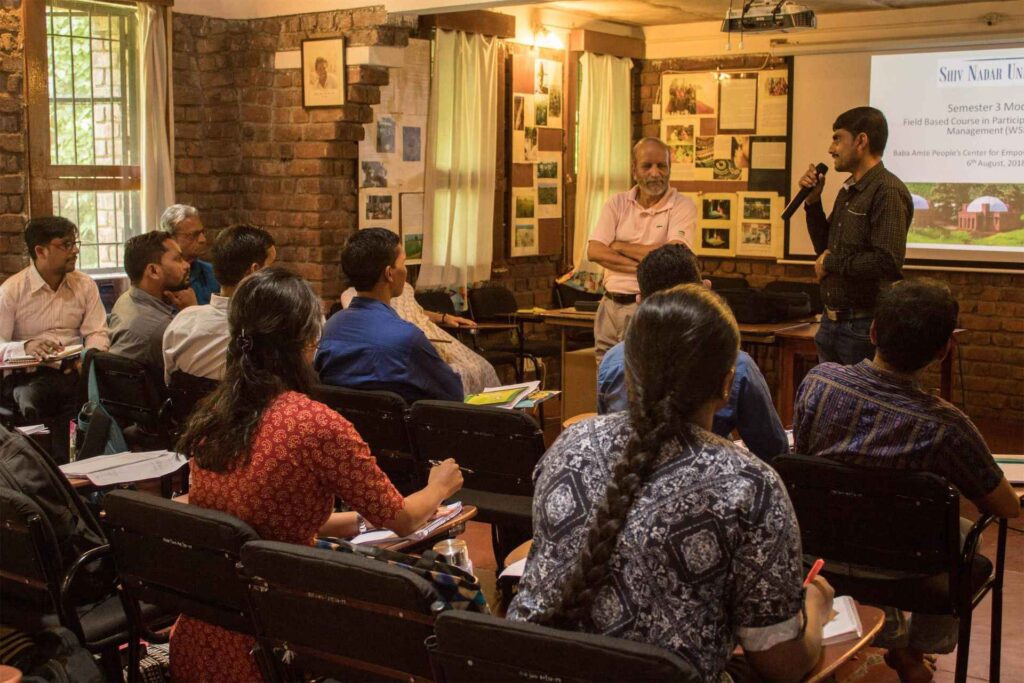 Since inception, SPS has continuously been engaged with the question of scaling up the impact of its work. The challenge is to work at scale, without compromising on quality. Rather than directly expanding the scale of our own operations (and risk bureaucratisation), we have opted to remain a lean, learning organisation that builds on partnerships. In this way, we are able to retain quality while achieving scale, thus overcoming the oasis syndrome that most NGO work suffers from. Our experience has taught us that the most difficult part of our work is the task of mobilising local communities and empowering them, leading to formation of local leadership in the long-term. It is our conviction, fortified by our experience over the last decade, that the most powerful way in which we can upscale the impact of our work is to build partnerships with those grass-roots NGOs, PRIs, governments, Civil Society, Organisations, and other stakeholders as a Support Voluntary Organisation (SVO). It is this vision that led to the formation of the Baba Amte Centre for People’s Empowerment (the first institution to be named after Baba Amte anywhere in the world) in 1998 at the Adivasi village Neemkheda in Bagli Tehsil of Dewas District, Madhya Pradesh. The center serves as a training facility, a living classroom, in which we provide tailored modules that focus on sharing technical expertise with the partners.