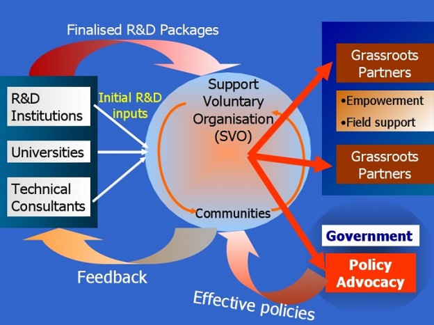 1. With grass-roots NGOs, who implement the program in their own areas by mobilising local communities and working with panchayat raj institutions (PRIs), the institutions of local self-government in India. The SVO builds the capacities of these partner NGOs and develops them into a network. Over the last decade, we have worked on 2 million acres of land with 122 such partners in 72 of India’s most backward districts across 12 states. It is through their work at the grassroots that SPS interventions attain a greater scale.